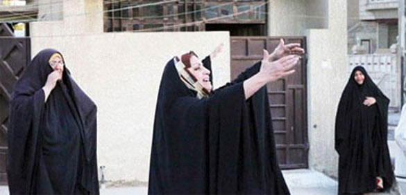 Women grieve for a loss of a man killed in a bomb attack during a funeral procession at al-Amel neighborhood in Baghdad, Iraq, on Monday. (AP)