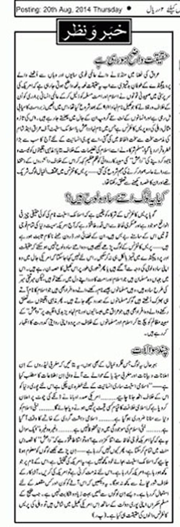 Source: Dawat, 22 August 2014 (Mouthpiece of Jamaat-e-Islami)