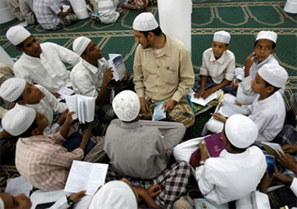 Students attend a traditional Sufi "Halaqa" (study group) at the Ribat Tarim religious school in the historical city of Tarim in south-eastern Yemen, Feb. 23, 2010. (Photo by REUTERS/Khaled Abdullah)
