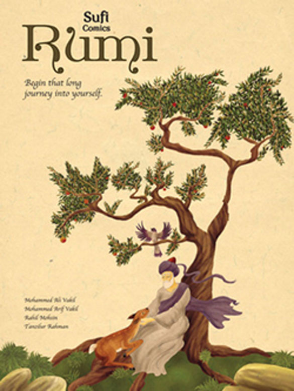 Some years ago, a band of lovers of Sufi literature based in Bangalore got together to bring out Sufi-related literature in comic form and using contemporary idiom, trying, in this way, to reach out with the Sufi message to a broader cross-section of society, beyond a narrow circle.  This beautifully-crafted book—in itself a delicate work of art—is their third publication. The publishers describe the book as “a modest attempt to bring awareness of what Rumi meant to share. A deeper insight into his teachings.”