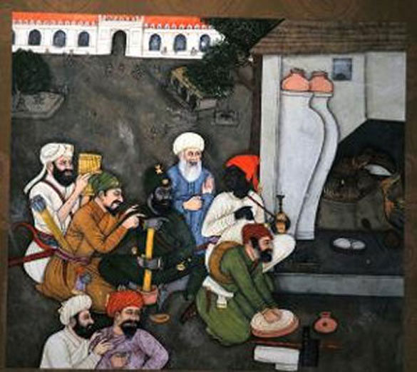 A Mughal painting shows two Africans in a group sharing a light moment. It hints at a more open-minded Indian society.