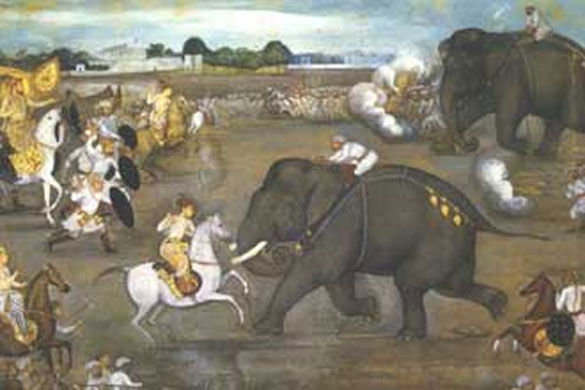 Photo: Prince Aurangzeb facing a maddened elephant named Sudhakar, 1633.