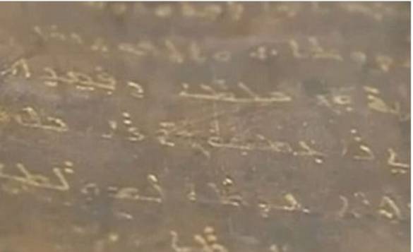 Handwritten in gold-lettered Aramaic