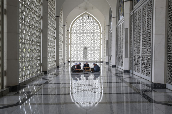 Boys recite the Quran at Sultan Salahuddin Abdul Aziz Shah Mosque in Shah Alam May 22, 2019. — Picture by Yusof Mat Isa