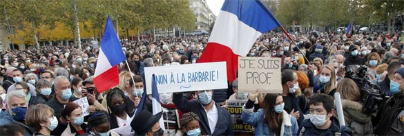 middle-school teacher in France, Samuel Paty, is beheaded for showing cartoons