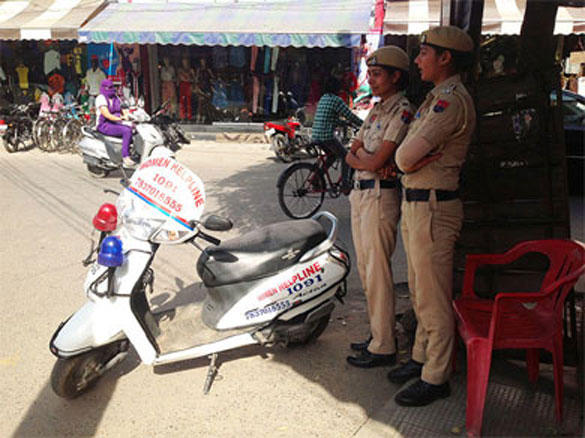 Ludhiana bazaar with their Women Helpline scooty.