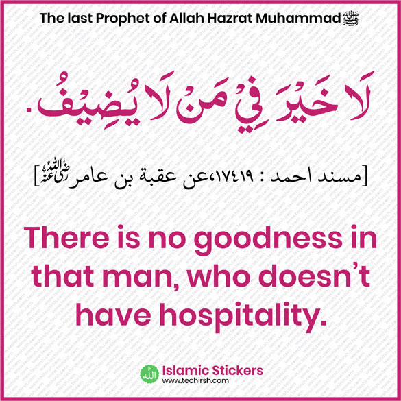 “Indeed whoever believes that Allah is All-Generous, Who provides for His creation and rewards those who are hospitable towards their guests, should look after his guest.” Prophet Muhammad Pbuh