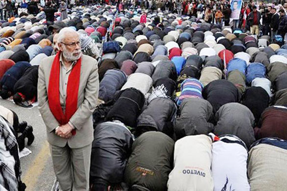 Isaac guards Muslim protesters while praying during the days of the revolution