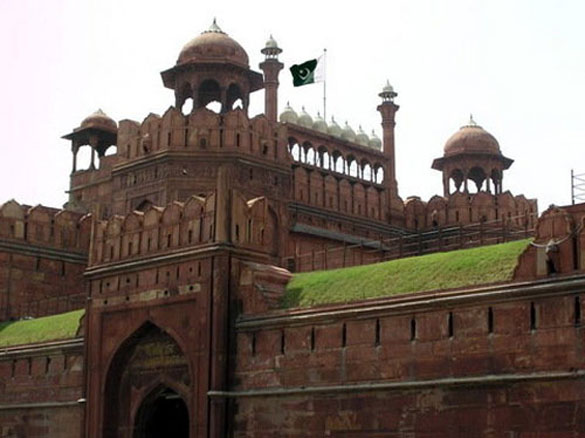 Ghazwa-tul-Hind: Pakistani flag hoisted at Red Fort, Delhi, India. This image was created and circulated by the Brasstacks.biz (ISI mouth-piece Zaid Hamid’s organization) team.