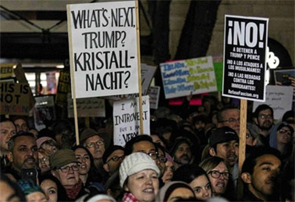 Demonstrations erupted in Atlanta, Baltimore, Boston, Chicago, Dallas, Detroit, San Francisco, New York and Washington. Britain’s prime minister Theresa May hardly had time to unpack her bags from her trip to Washington, than she found that her newly formed “special relationship” with Trump had turned into a domestic political liability.
