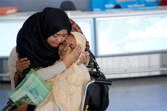 embrace at New York's JFK International Airport in the hours after the ban was