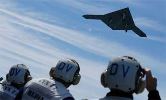 An X-47B drone combat aircraft. Final targeting decisions are made by military personnel but mistakes by contractors could lead to the wrong people being killed. Photograph: Jason Reed/Reuters