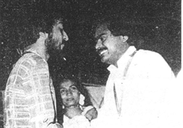 Altaf Hussain shaking hands with APMSO member, Farooq Sattar, at the Karachi University in 1981. Sattar today is a leading member of the MQM and a Minister in the current PPP-led collation government in Sindh and at the centre.