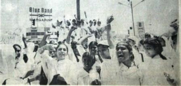 The launching of the APMSO outside the Arts Lobby at the Karachi University, June 1978