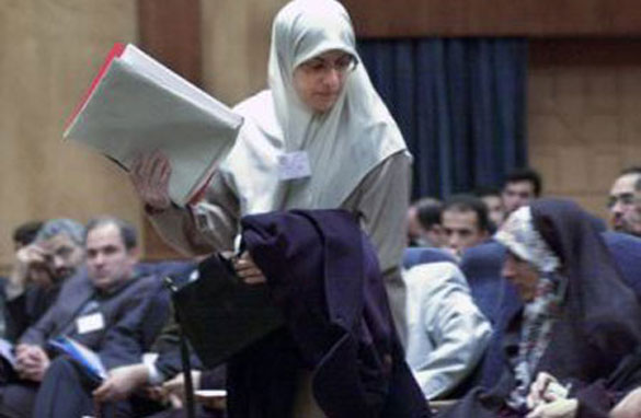 The Sharia prescribes stoning to death for adultery, but nowhere in the Quran is there anything remotely related to stoning, says Ziauddin Sardar. Here, the reformist Iranian lawmaker Elaheh Koulaee at an extraordinary congress of the Iran Islamic Participation Front in Tehran in December 2002. Iran's women legislators launched a campaign to abolish stoning as a punishment, but the practice still survives.