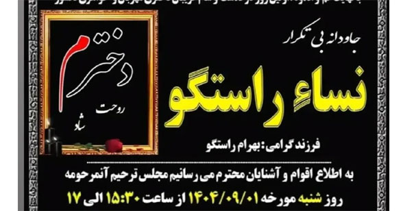 Fatima Babakhani, founder of the Mehr Shams Afarid safe house that supports abused women in Urmia, posted on Saturday that Rastgoo’s family was informed of her killing on Friday morning, although the crime occurred on Thursday evening.