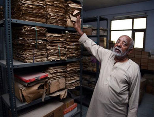 The Hindu Photo:  Collector of old documents, Khalid Sabir, inside one of the rooms at his residence where he has stored all the documents in New Delhi on September 01, 2014. Photo: S. Subramanium