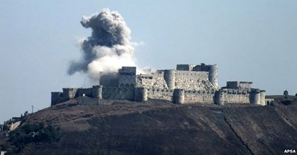 In March the Syrian air force bombed the world's best preserved Crusader Castle, the 12th Century Krak des Chevaliers (above) in Homs province.