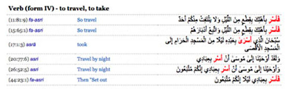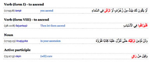 Screenshots from corpus.quran.com