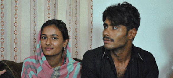 Kiran Kumari with her husband, Shabbir Ahmed, at Mian Mitho’s residence in Daharki. Photo by Shoaib Tariq