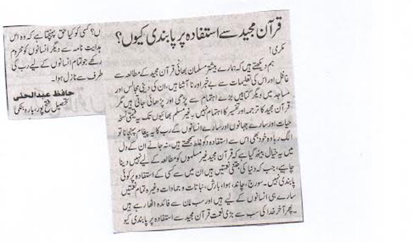 of the Quran. A campaign for self-study of the holy Quran should be launched by