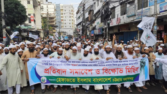 Hefazat-e-Islam Bangladesh staged a protest rally in Chattogram city today, demanding a ban on the International Society for Krishna Consciousness (Iskcon).