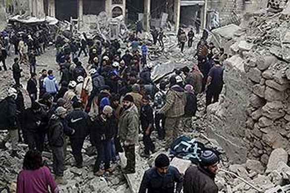 Photo: Residents look for survivors at a site hit by what activists said were three consecutive air strikes carried out by the Russian air force in the rebel-controlled area of Maaret al-Numan town in Idlib province on Jan. 12. (Photo: Reuters)