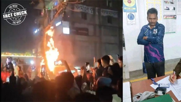 Visuals showing Dipu Chandra Das (R), who was beaten to death, tied to a tree, and burnt by a Bangladeshi mob on Thursday | X