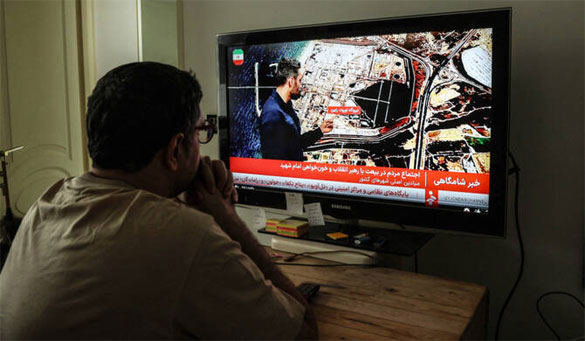 An Iranian man watches the news on Iranian State TV (IRIB) in Tehran on March 23, 2026. (AFP)