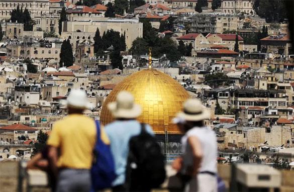 Tourists look at the Dome of the Rock, located in Jerusalem's Old City on the compound known to Muslims as Noble Sanctuary and to Jews as Temple Mount