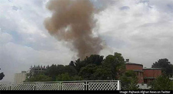 Smoke rises from the Afghan Parliament after it was rocked by loud explosions and gunfire. (Image: Pajhwok Afghan News)
