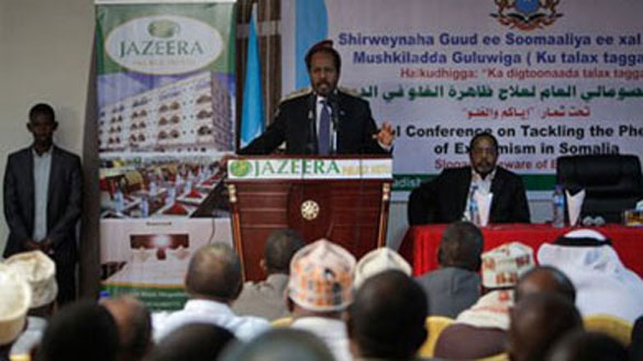 Photo: Somali President Hassan Sheikh Mohamud addressed the conference on tackling extremism in Mogadishu