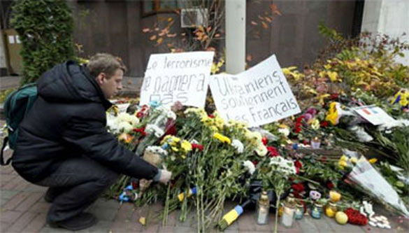 A man pays tribute to victims of attacks in Paris, in Kiev. (Reuters)