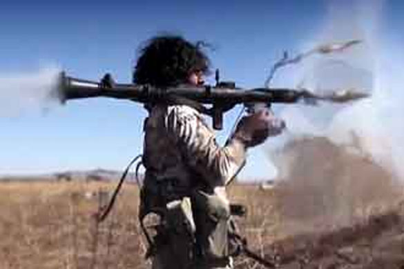 Photo: An Islamic-State fighter with a shoulder-held missile. (Photo: Islamic-State video screenshot)