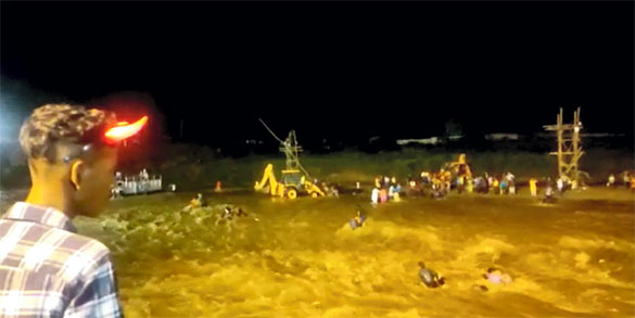 Jalpaiguri: Rescuers attempt to stop people from getting swept in flash floods in the Mal river, in Jalpaiguri district, Wednesday, Oct. 5, 2022. Idol immersion of several community Durga pujas was being held in the river when the tragic incident happened. Photo: PTI