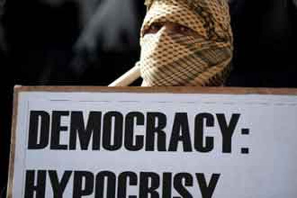 Photo: Demonstrators from Muslims Against Crusaders protest against democracy outside the US Embassy in London in 2011
