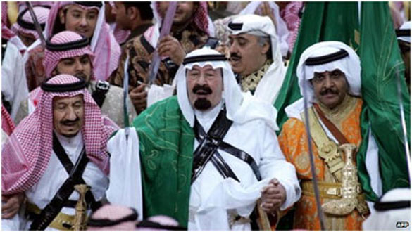 Islamic State rejects the authority of Saudi King Abdullah, pictured centre
