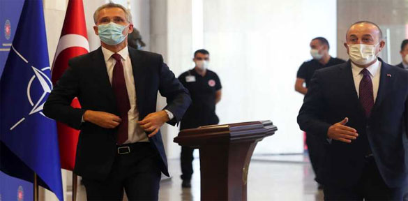 Secretary-General Jens Stoltenberg (C) and Turkey's Foreign Minister Mevlut