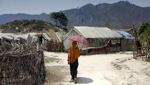 Rohingya woman walks at the Kyein Ni Pyin camp for internally displaced people