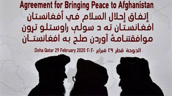 Members of the Taliban delegation ahead of the signing ceremony with the United States in the Qatari capital Doha, on February 29, 2020. Photo: AFP/Giuseppe Cacace
