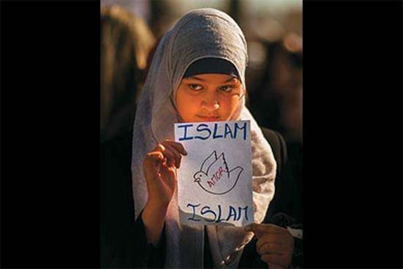 Islam is love A Muslim girl in Madrid holds up the banner for her faith in the wake of the Charlie Hebdo massacre AP