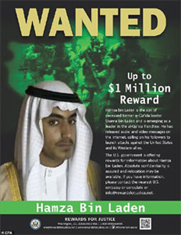 The U.S. government announced a $1 million reward last week for information to track down Hamza bin Laden, who has taken up the mantle of global jihad since his father's death in 2011.