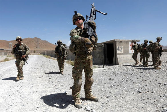 US troops patrol at an Afghan National Army (ANA) base in Logar province, Afghanistan August 7, 2018. Photo: Reuters/Omar Sobhani/File Photo