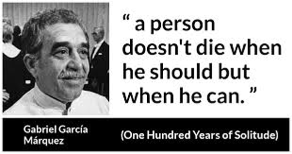 Though I read Colombian Nobel laureate Gabriel Garcia Marquez's 1967 novel, " One Hundred Years of Solitude " in English long ago, I'm re-reading it in original Spanish despite my Spanish not being in excelsis. There's a quite heavy-hitting line in it, " Que uno no se muere cuando debe, sino cuando puede " (A person doesn't die when he should but when he can), said by Colonel Aureliano Buendia in the novel. This encapsulates the enigmatic nature of human existence. It hints at the complexity of mortality and suggests that death is not necessarily constrained by predetermined circumstances or external factors.
