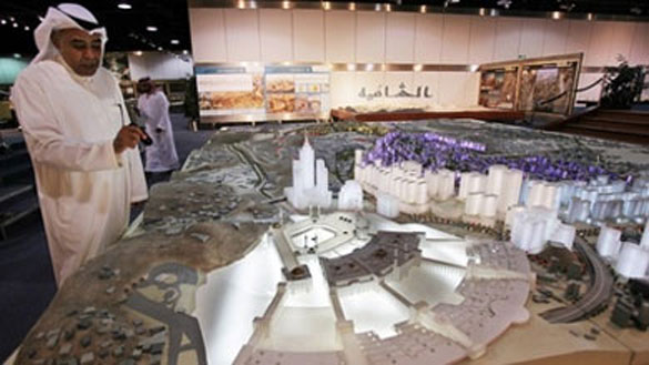 Essam Kalthoum, left, managing director of the Bawabat Makkah Company, which oversees several projects around the city, shows a prototype of what the heart of Makkah, will look like after construction around the Grand Mosque is complete. Photo: AP
