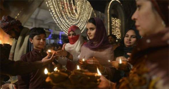 Devotees light candles around a fire at the shrine of Sufi saint Hazrat Shah Hussain, during the annual festival Mela Chiraghan (the festival of lights) in Lahore. | Arif Ali/AFP