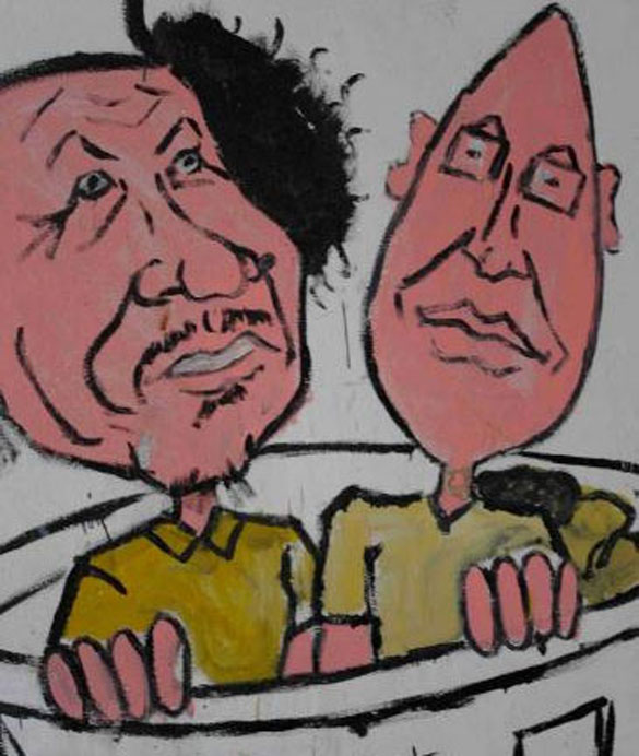 "We got rid of one Gaddafi, now we have six million." Pictured: A graffito depicting Muammar Gaddafi and his son Saif al-Islam, who is currently on trial