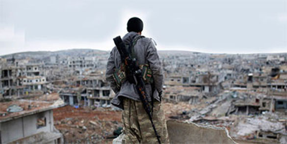 A Syrian Kurdish sniper looks at the rubble in the Syrian city of Ain al-Arab, also known as Kobani, in this Jan. 30, 2015 file photo.(Photo: AP)